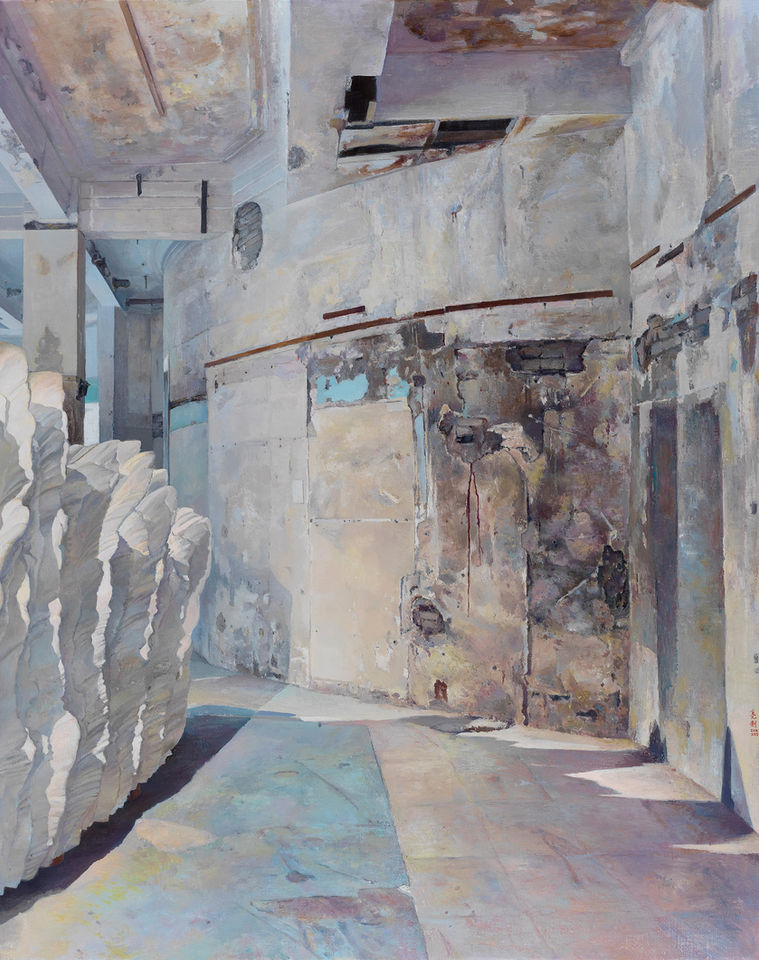 Lu’s painting is an ever-more time-consuming process; completing a painting takes anywhere from a couple of months to several years of labor. Some may say that nowhere in the world can one find a place as complicated and absurd as modern China. Lu Liang’s paintings are not profound because they are profound portrayals of reality; rather, they are profound because the artist’s emotive apprehension of reality is profound. When confronted by Lu Liang’s paintings, one can almost hear them giving deep sighs. Lu has created the imagery of the contemporary age in an unprecedented way. They are of the neglected corners of everyday life, imbued with overpowering spiritual apprehension; the silent images that, in its darkness, give rise to insuppressible drives and impulses. Lu’s paintings contain both the spark of life within and a surprising spirit of scrutiny and criticism from without.
