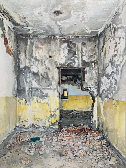 《砖堆》构思源自弗里德里希冰山沉船一画。荒原上的废墟!现实中容易被轻易忽略的景象我试图将它定格成永恒,我利用照片和拣来的破砖一块一块在画室里死抠了好几个月。此画可能是在07年个展中展出效果最好的一幅。