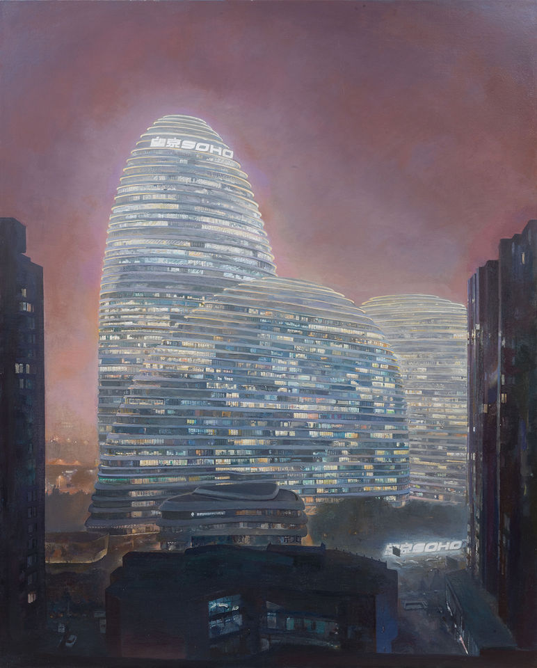 Besides the figure, another important theme of Lu’s works is landscape. Without daylight, these landscapes only have night, dawn and twilight. Like those figure paintings, all the scenes are unfolded under various lights: the unclear sun, dim fluorescent light, shocking lightning, aggressive flashlight, and etc. As the absolute leading character hidden in Lu’s works, the light traverses air and floating dust and integrates with shade and color. Eventually, all the scenes are reflected on our retinae in the form of light. Influenced by Gerhard Richter, a
