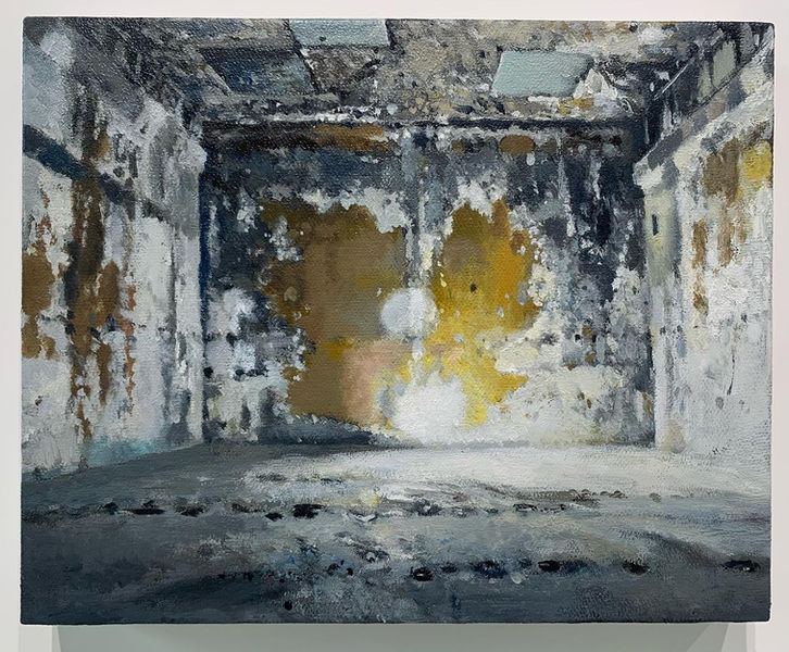 《煤库》延续《南湖电影院》之后的又一副室内小画。比起电影院少了好些人文的符号:迎客松等。或者说,电影院虽然简陋,它本身就是一个特殊年代的文化象征。在煤库,空旷的煤库,主题单纯得多,所指是对人类生存的焦虑。当我初次站在巨大的煤库中央,矮小的煤堆退缩在深处,煤块像宝石一样闪闪发光。煤库里冷冷地但蕴含着巨大的能量。象掉入了黑洞,怎么会那么熟悉又那么遥远!我决定开始画它。希望可以超过《电影院》。目前小幅已近完成,不过瘾,开了一张近三乘五米的大画。象个工程!要达到远观近察的“细”可能得画上整整一年的时间。既然开始了,我不在乎!我想自己一定是疯了!